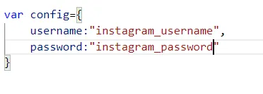 1. Create a config object with two fields, username, and password. inside the quotes please replace the Instagram username and password.